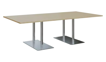 jednací stůl na dvojité centrální noze, trubková noha, obdélníková základna