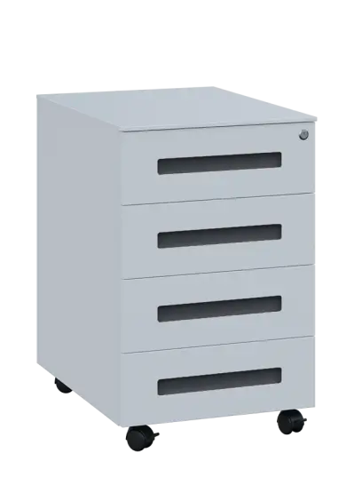 PKK - 4  kontejner kovový pojízdný, 4-zásuvkový, stříbrný/úchytka antracit
