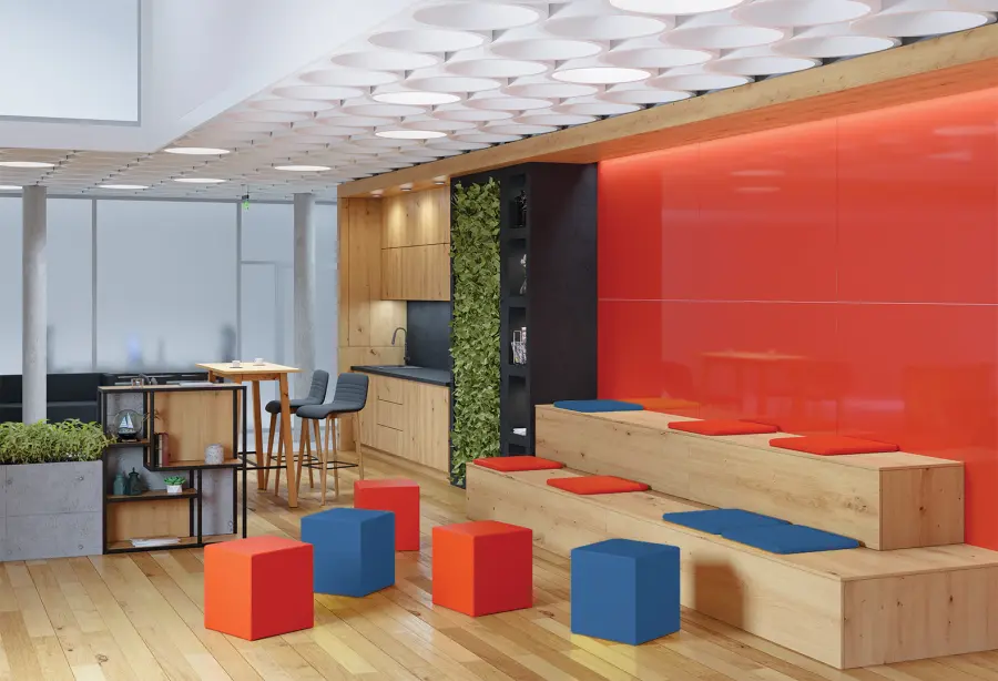 sedací taburet ve tvaru kostky s širokým využitím, čalounění v barevné ekologické kůži, plastové kluzáky