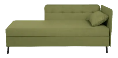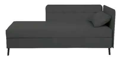 celočalouněná pohovka s úložným prostorem, čalouněná opěrná deska s elegantním proševem v hlavové a boční části, hlavová část polohovatelná až do úhlu 40°