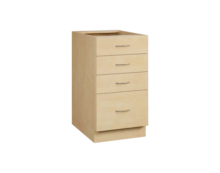 Skříňky jsou pevné, voděodolné, jednoduše dezinfikovatelné, certifikované pro laboratoře. Osadíme dřez, baterii a lednici podle potřeby. Spodní skříňky neobsahují pracovní desku viz popis.