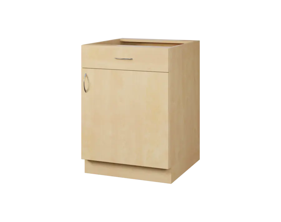 Skříňky jsou pevné, voděodolné, jednoduše dezinfikovatelné, certifikované pro laboratoře. Osadíme dřez, baterii a lednici podle potřeby. Spodní skříňky neobsahují pracovní desku viz popis.