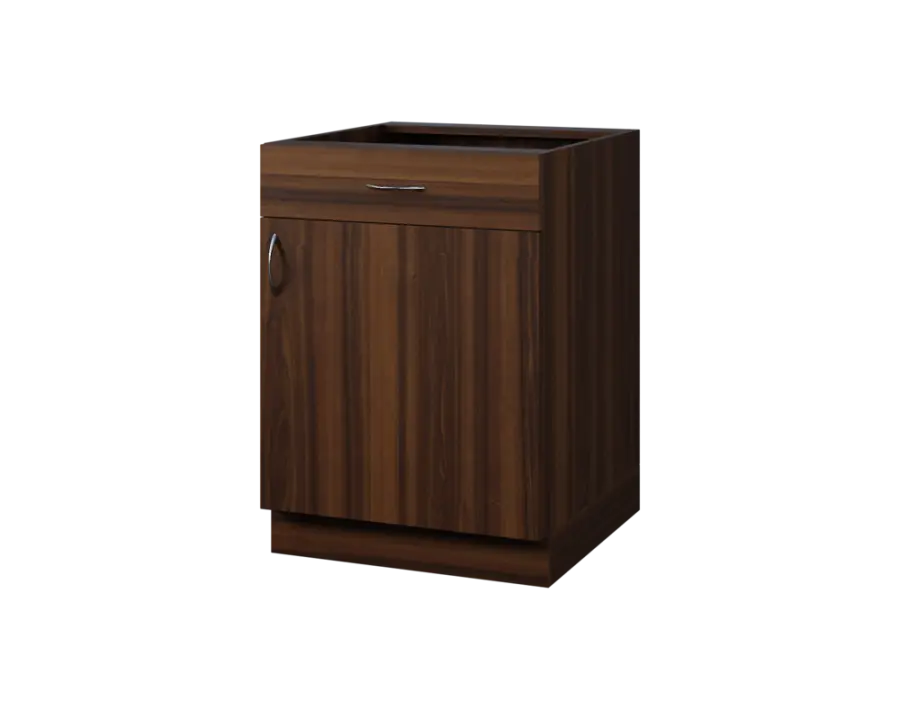 Skříňky jsou pevné, voděodolné, jednoduše dezinfikovatelné, certifikované pro laboratoře. Osadíme dřez, baterii a lednici podle potřeby. Spodní skříňky neobsahují pracovní desku viz popis.