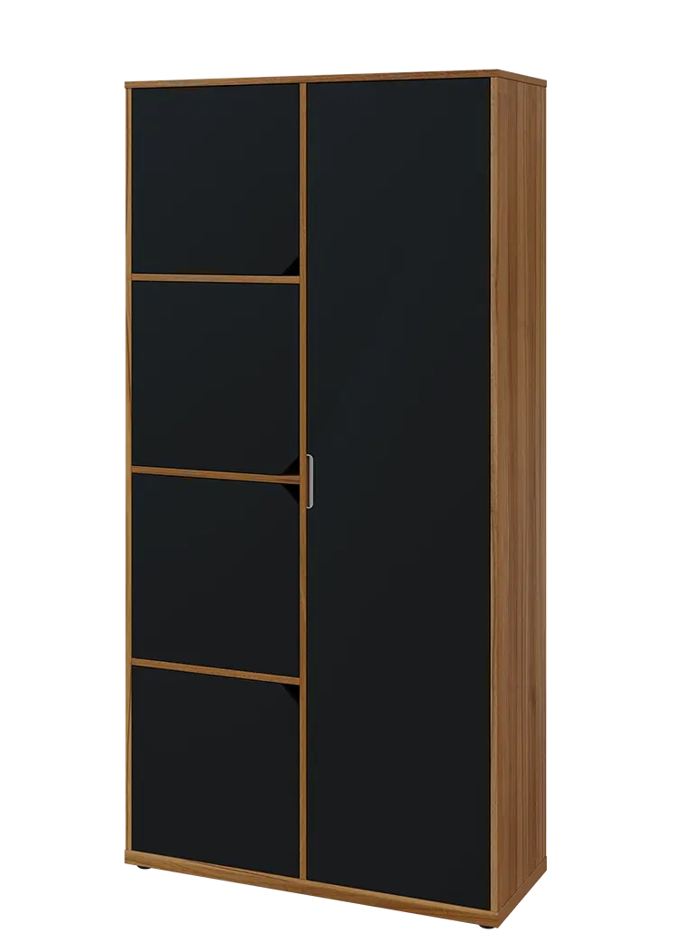KSR6-82 P skříň šatní, 1x výsuvné ramínko, 4x dvířka, 2053x1022x400 mm, provedení pravé, ořech světlý/černá