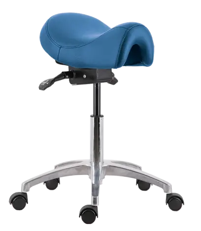 lékařská židle s tvarovaným sedákem ve tvaru sedla, chromovaný kříž o průměru 500 mm