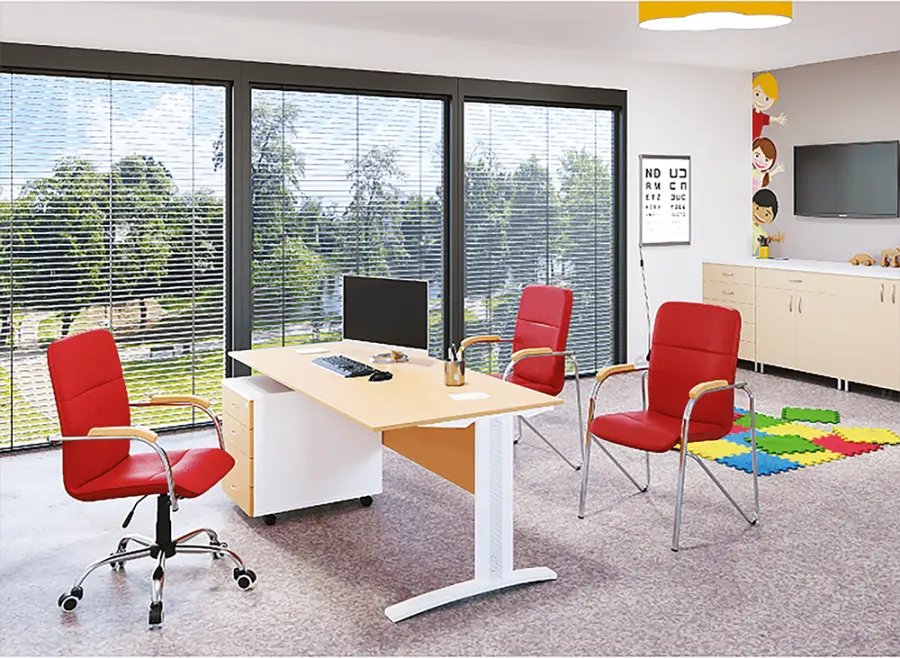 konferenční židle, čalouněný sedák a područky vysoce odolnou koženkou, chromovaná kostra