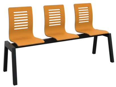 3-místná čekárenská lavice s překližkovými sedáky a svařovanou robustní ocelovou kostrou v černém laku