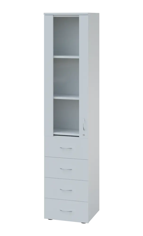 lékařská prosklená skříň, vyrobeno z kvalitního lamina o síle 18 mm, ABS hrana pro zvýšení životnosti, vybaveny výsuvnou odkládací deskou