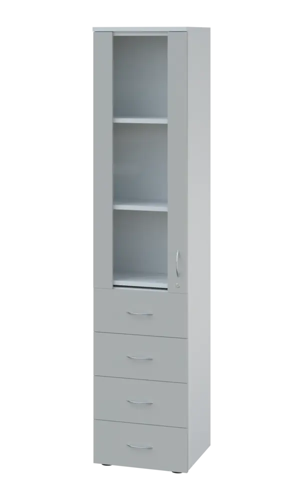 lékařská prosklená skříň, vyrobeno z kvalitního lamina o síle 18 mm, ABS hrana pro zvýšení životnosti, vybaveny výsuvnou odkládací deskou