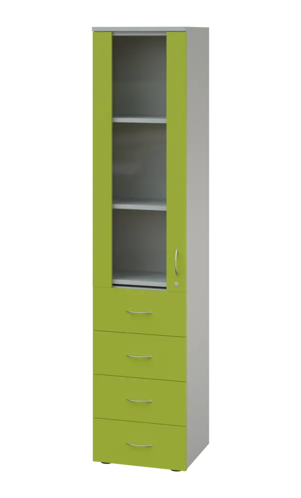 lékařská prosklená skříň, vyrobeno z kvalitního lamina o síle 18 mm, ABS hrana pro zvýšení životnosti, vybaveny výsuvnou odkládací deskou