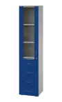 lékařská prosklená skříň, vyrobeno z kvalitního lamina o síle 18 mm, ABS hrana pro zvýšení životnosti, vybaveny výsuvnou odkládací deskou