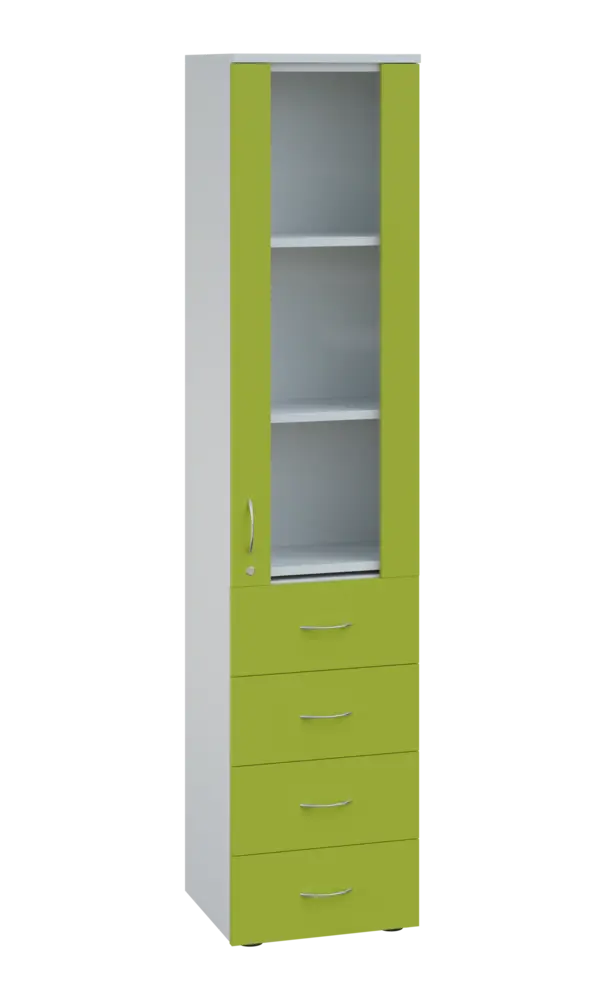 lékařská prosklená skříň, vyrobeno z kvalitního lamina o síle 18 mm, ABS hrana pro zvýšení životnosti, vybaveny výsuvnou odkládací deskou