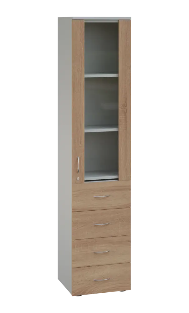 lékařská prosklená skříň, vyrobeno z kvalitního lamina o síle 18 mm, ABS hrana pro zvýšení životnosti, vybaveny výsuvnou odkládací deskou