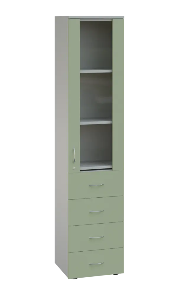 lékařská prosklená skříň, vyrobeno z kvalitního lamina o síle 18 mm, ABS hrana pro zvýšení životnosti, vybaveny výsuvnou odkládací deskou