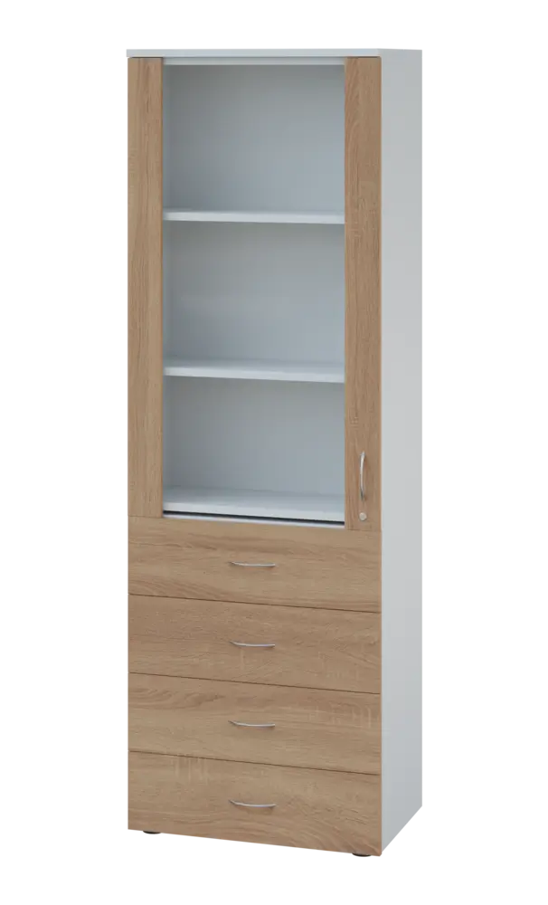 lékařská prosklená skříň, vyrobeno z kvalitního lamina o síle 18 mm, ABS hrana pro zvýšení životnosti, vybaveny výsuvnou odkládací deskou
