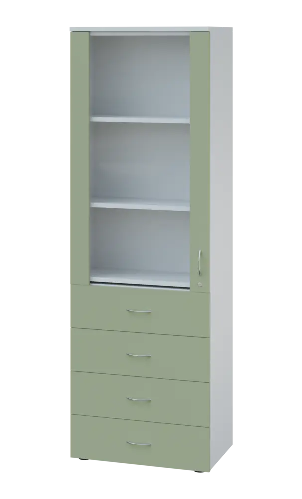 lékařská prosklená skříň, vyrobeno z kvalitního lamina o síle 18 mm, ABS hrana pro zvýšení životnosti, vybaveny výsuvnou odkládací deskou