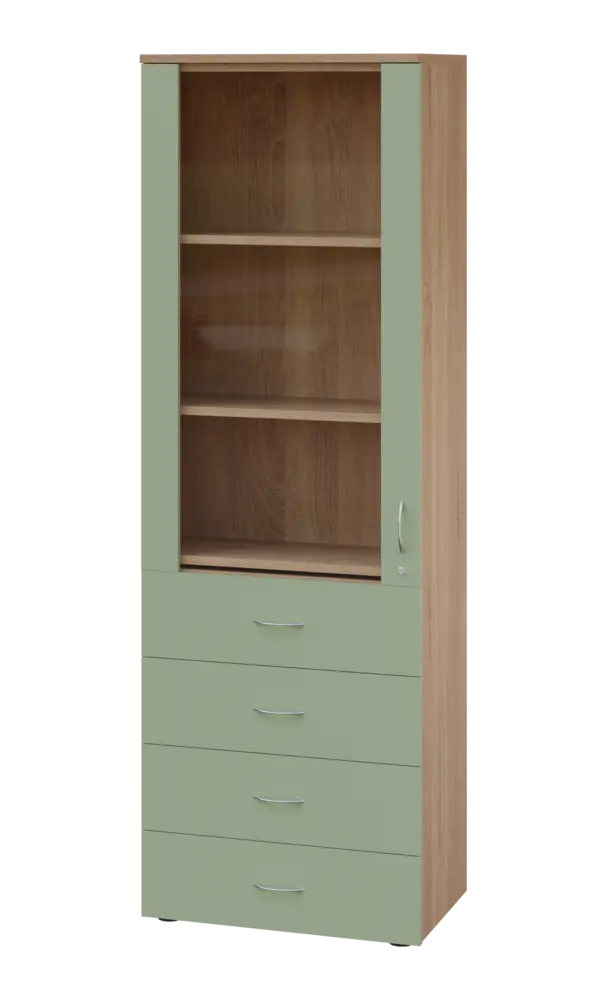 lékařská prosklená skříň, vyrobeno z kvalitního lamina o síle 18 mm, ABS hrana pro zvýšení životnosti, vybaveny výsuvnou odkládací deskou