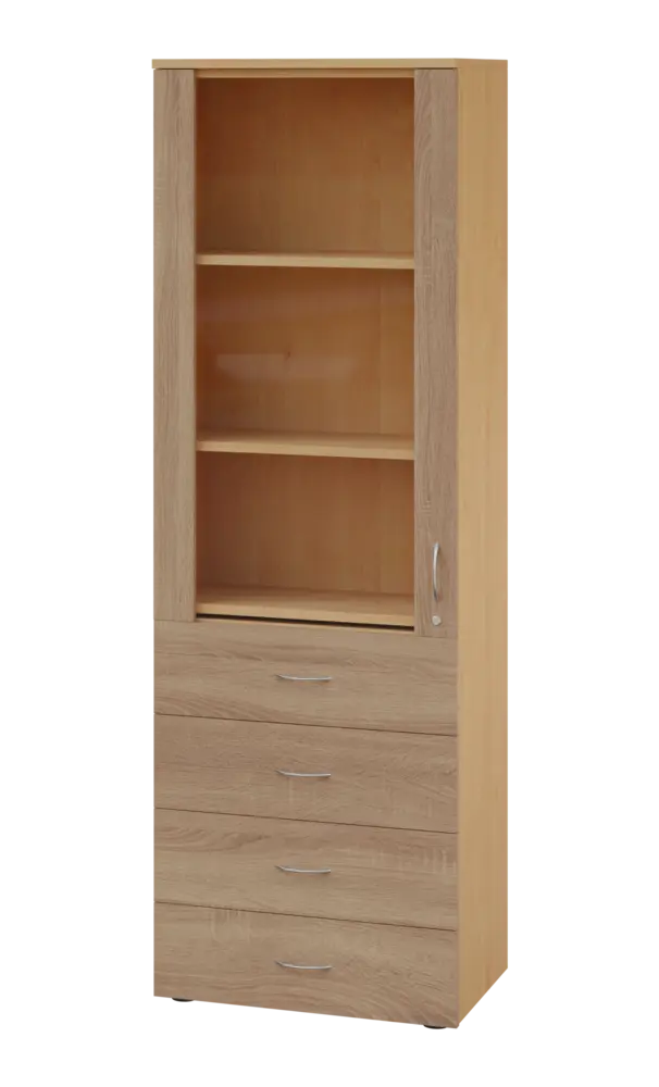 LE - 00 skříň lékařská prosklená, korpus buk royal, dvířka buk royal
