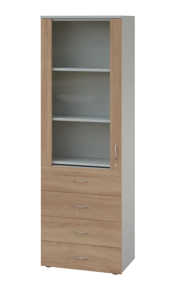 lékařská prosklená skříň, vyrobeno z kvalitního lamina o síle 18 mm, ABS hrana pro zvýšení životnosti, vybaveny výsuvnou odkládací deskou