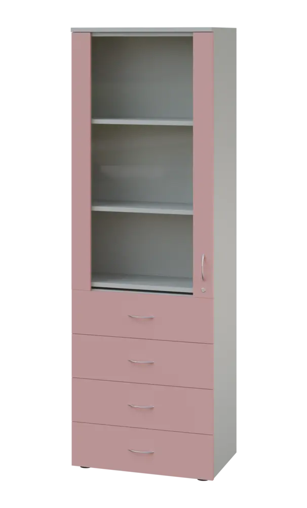 lékařská prosklená skříň, vyrobeno z kvalitního lamina o síle 18 mm, ABS hrana pro zvýšení životnosti, vybaveny výsuvnou odkládací deskou