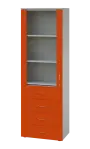 LE - 64 skříň léková prosklená, levá, korpus šedý, dvířka žlutá odio
