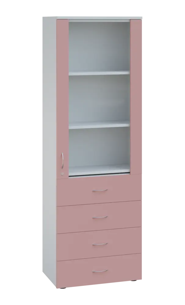 lékařská prosklená skříň, vyrobeno z kvalitního lamina o síle 18 mm, ABS hrana pro zvýšení životnosti, vybaveny výsuvnou odkládací deskou