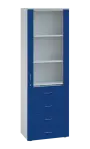 lékařská prosklená skříň, vyrobeno z kvalitního lamina o síle 18 mm, ABS hrana pro zvýšení životnosti, vybaveny výsuvnou odkládací deskou