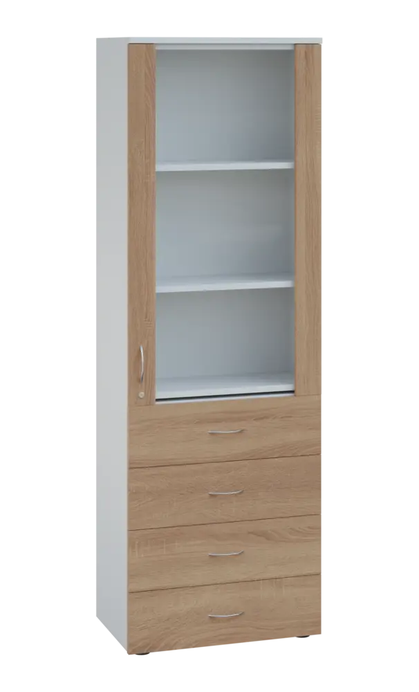 lékařská prosklená skříň, vyrobeno z kvalitního lamina o síle 18 mm, ABS hrana pro zvýšení životnosti, vybaveny výsuvnou odkládací deskou