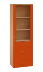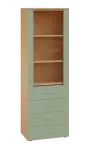 LE - 44 skříň léková prosklená, pravá, korpus dub bardolino, dvířka žlutá odio