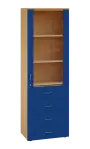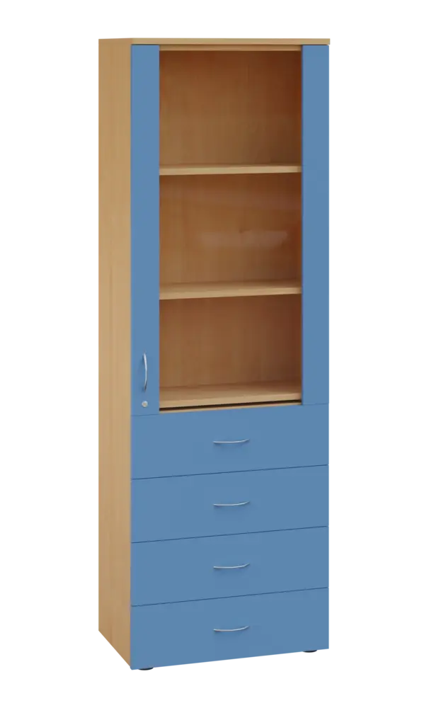LE - 64 skříň léková prosklená, pravá, korpus javor horský, dvířka pastelově modrá