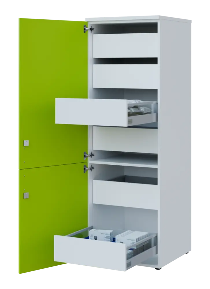 zásuvkové lékařské skříně zajišťují snadnou manipulaci, přehlednost a maximální využití prostoru, zásuvky se snadno vysouvají a zasouvají i při plném zatížení