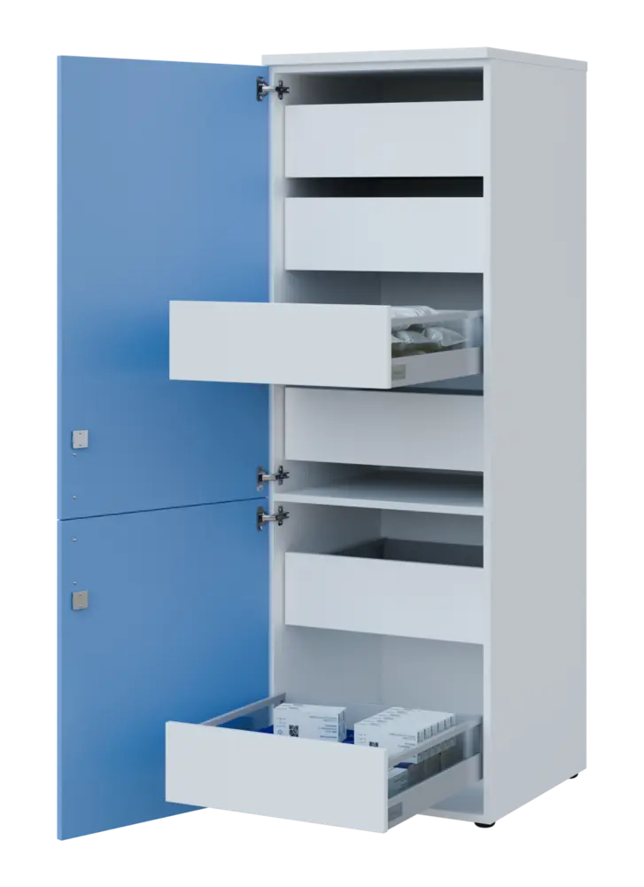 zásuvkové lékařské skříně zajišťují snadnou manipulaci, přehlednost a maximální využití prostoru, zásuvky se snadno vysouvají a zasouvají i při plném zatížení