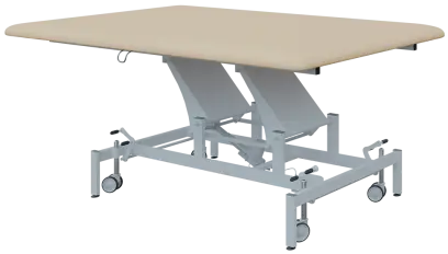 2-segmentové jednomotorové lehátko s elektrickým nastavením výšky stolu, hlavová část s otvorem pro obličej s krycí zátkou, komfortní matrace o výšce 70 mm, čalouněna vysoce kvalitní silikonovou kůží MEDI SK