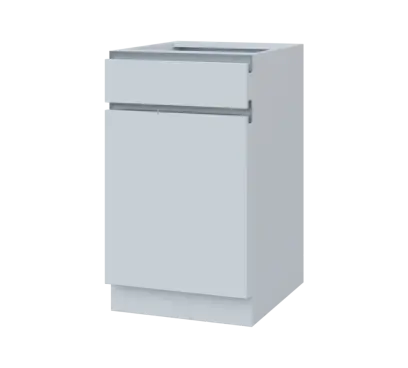 Kuchyňka reprezentuje firmu u zaměstnanců i návštěv. Nábytková řada MEDI HIDE obsahuje prémiové kování BLUM s lehkým a tichým chodem a s bezúchytkovým otevírání přes nerezové profily v korpusu. Neobsahuje pracovní desku viz popis.