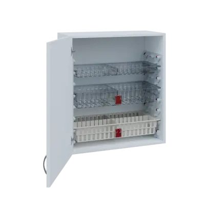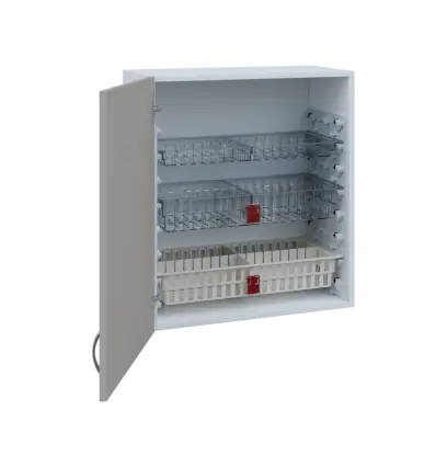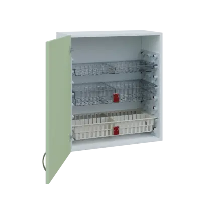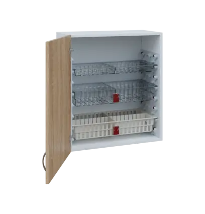 EUROMEDICA je ucelená řada lékařského nábytku, s horními i dolními skříňkami, regály a pracovní deskou. Odolná proti častému mytí a dezinfekci, je certifikovaná pro laboratoře. Spodní skříňky neobsahují pracovní desku viz popis.