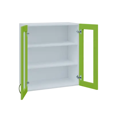 MH - 65S2 horní skříňka boxová, 2-dveřová, prosklená, 770x654x440, korpus bílý, dvířka jarní zeleň