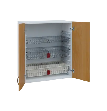 EUROMEDICA je ucelená řada lékařského nábytku, s horními i dolními skříňkami, regály a pracovní deskou. Odolná proti častému mytí a dezinfekci, je certifikovaná pro laboratoře.