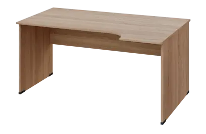 CRL 28 - 168 stůl kancelářský, rohový, pravý, dřevěná podnož, deska 25 mm, široký 1600 mm, dub bardolino