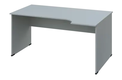 CRL 28 - 164 stůl kancelářský, rohový, pravý, dřevěná podnož, deska 25 mm, široký 1600 mm, šedá