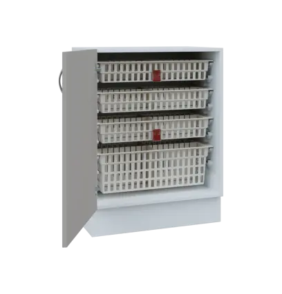 EUROMEDICA je ucelená řada lékařského nábytku, s horními i dolními skříňkami, regály a pracovní deskou. Odolná proti častému mytí a dezinfekci, je certifikovaná pro laboratoře. Spodní skříňky neobsahují pracovní desku viz popis.