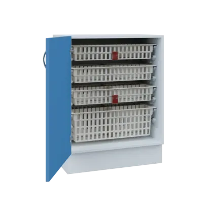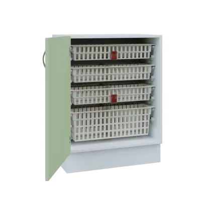 EUROMEDICA je ucelená řada lékařského nábytku, s horními i dolními skříňkami, regály a pracovní deskou. Odolná proti častému mytí a dezinfekci, je certifikovaná pro laboratoře. Spodní skříňky neobsahují pracovní desku viz popis.