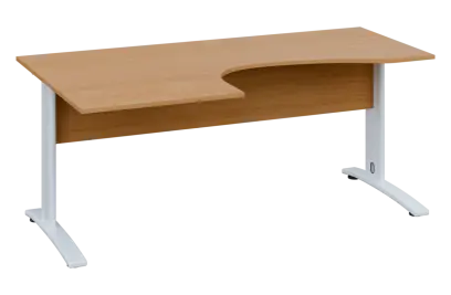 CEK 17 - 187 stůl kancelářský, rohový, levý, kovová podnož bílá, deska 18 mm, široký 1800 mm, buk royal