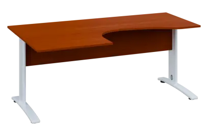 CEK 17 - 187 stůl kancelářský, rohový, levý, kovová podnož bílá, deska 18 mm, široký 1800 mm, třešeň šumavská