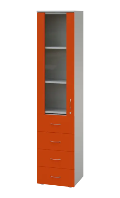 EUROMEDICA S - 46 skříň léková boxová, 1-dveřová/prosklená, pravá, 1950x460x735, korpus šedý, dvířka mandarinka