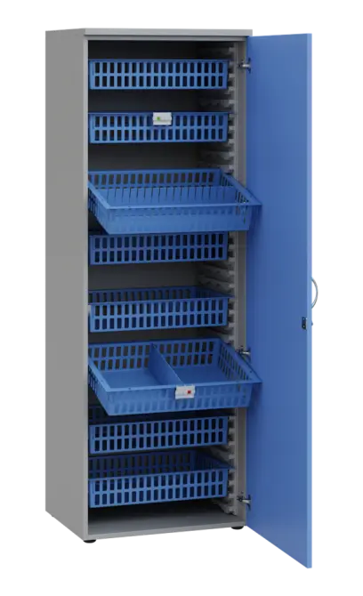 Skříně EUROMEDICA s koši MEDIBOX = nejpraktičtější uspořádání léků a zdravotnického materiálu
