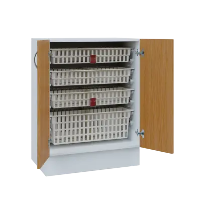 Nábytek EUROMEDICA je přímo dělaný pro koše MEDIBOX. Díky košům MEDIBOX budete mít přehledně uspořádané léky a zdravotnický materiál přesně dle Vašich potřeb. Koše jsou výsuvné, výklopné i vyjímatelné a můžete je libovolně přesouvat ve skříni i mezi skříněmi, regály a vozíky. Vše je přehledné, díky výsuvům výborně přístupné a maximálně využívá prostor. Příprava léků na výdej, jejich předání i převoz je nejjednodušší možný. Prostě box ze skříně dáte do vozíku a obráceně.