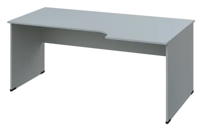 CRL 28 - 186 stůl kancelářský, rohový, pravý, dřevěná podnož, deska 25 mm, široký 1800 mm, šedá