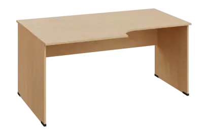 CRL 28 - 168 stůl kancelářský, rohový, levý, dřevěná podnož, deska 25 mm, široký 1600 mm, buk royal