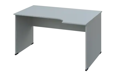 CRL 18 - 144 stůl kancelářský, rohový, pravý, dřevěná podnož, deska 18 mm, široký 1400 mm, šedá
