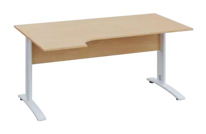 CRK 28 - 164 stůl kancelářský, rohový, levý, kovová podnož bílá, deska 25 mm, široký 1600 mm, bříza světlá